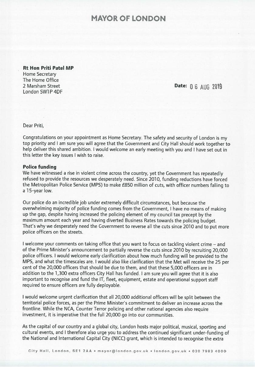 Mayor Of London Sadiq Khan On X In My Letter I Made It Clear That As Well As Properly Funding The Police To Be Tough On Crime It Is Equally Important That